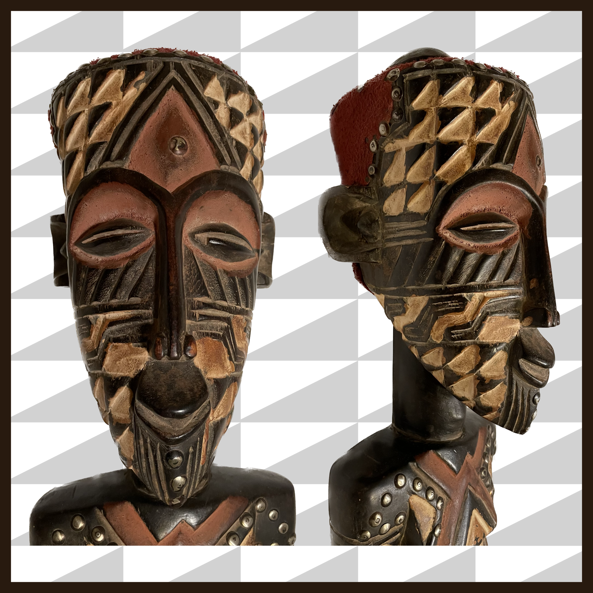 The Kuba People of the Congo (Congo-Kinshasa, Democratic Republic of Congo, DRC). This hand-carved, wooden ceremonial statues are conceived for religious ceremonies, initiations, tribal dances and markers for local celebrations.